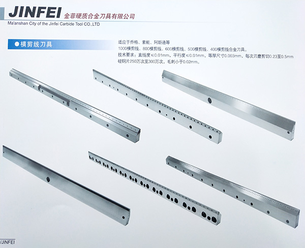 金菲公司生產(chǎn)組裝合金、焊接合金等高精度合金橫刀,廣泛應(yīng)用于硅鋼片剪切、切紙、鋁、銅箔等行業(yè)。